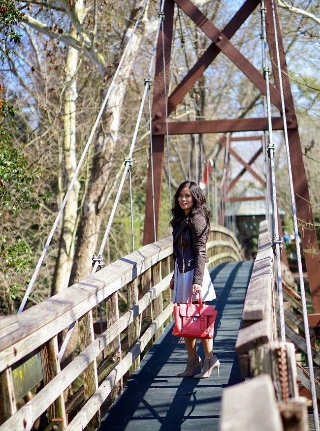 Obey Greenwich jacket c/o LuLu's (I'm wearing an XS)*, LOFT sweater (similar here or here), Forever 21 pants (I'm wearing a Small), c/o Dorothy Perkins heels, c/o Capwell & Co. necklace, Danielle Nicole clutch (similar), c/o BaubleBar earrings (similar), Bracelets: c/o BaubleBar (similar) & Zara (similar)
