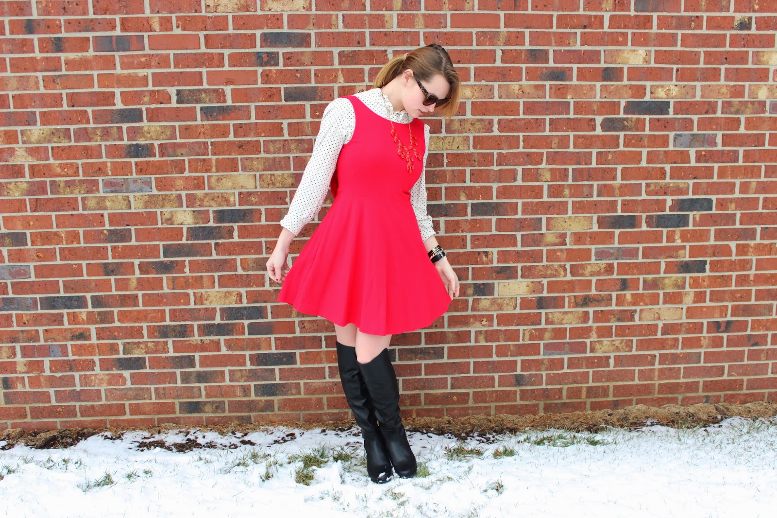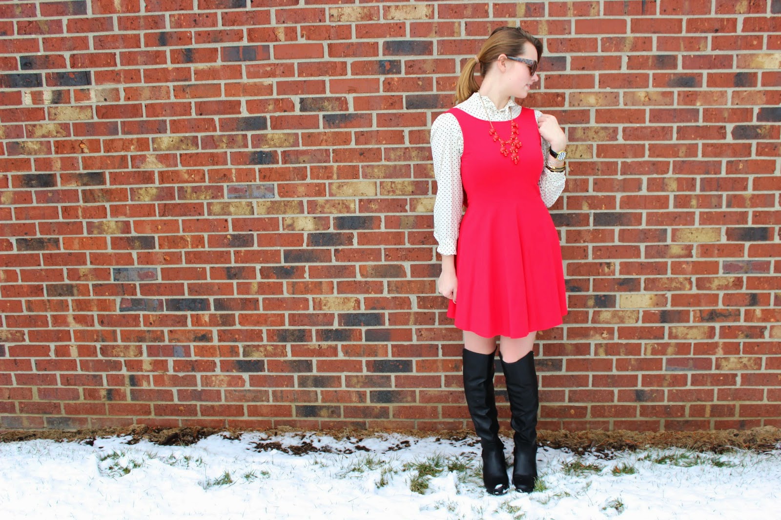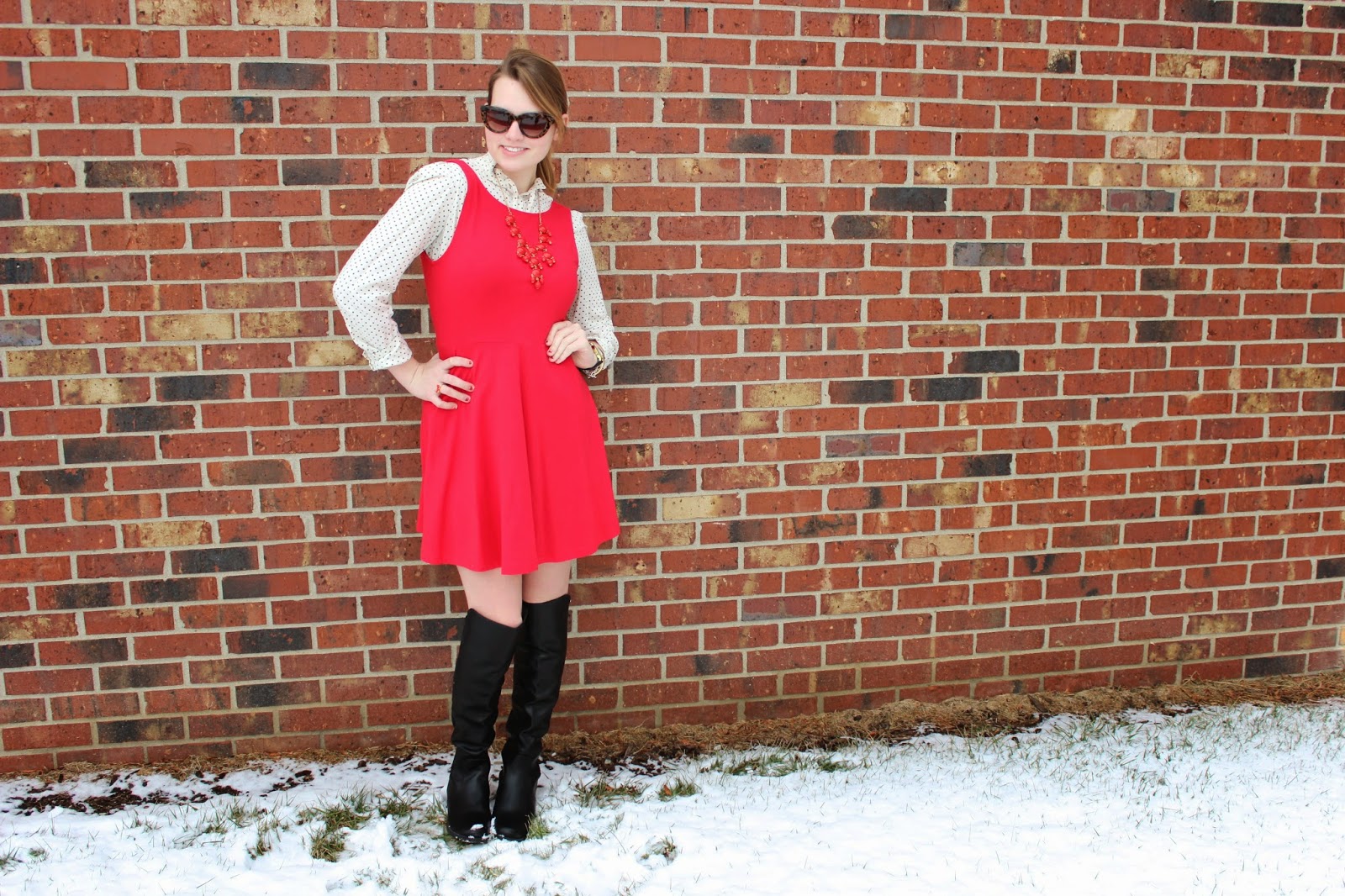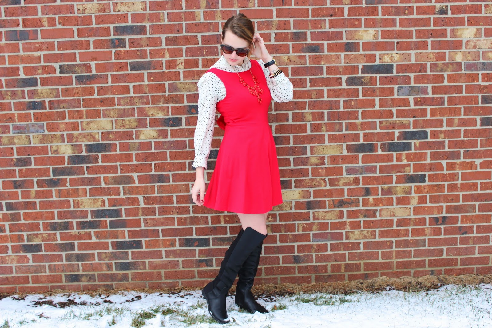 What I Wore: Dress: Forever 21/ Shirt: Target Similar/ Boots: DSW/ Sunnies: Kate Spade/ Necklace: J.crew Similar/ Bracelets: Kate Spade