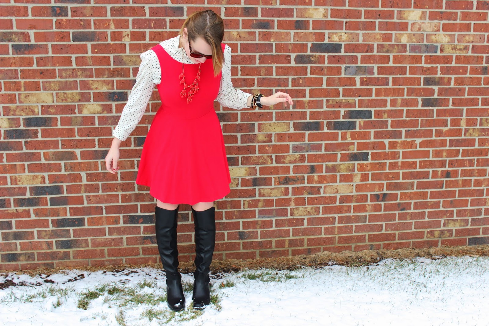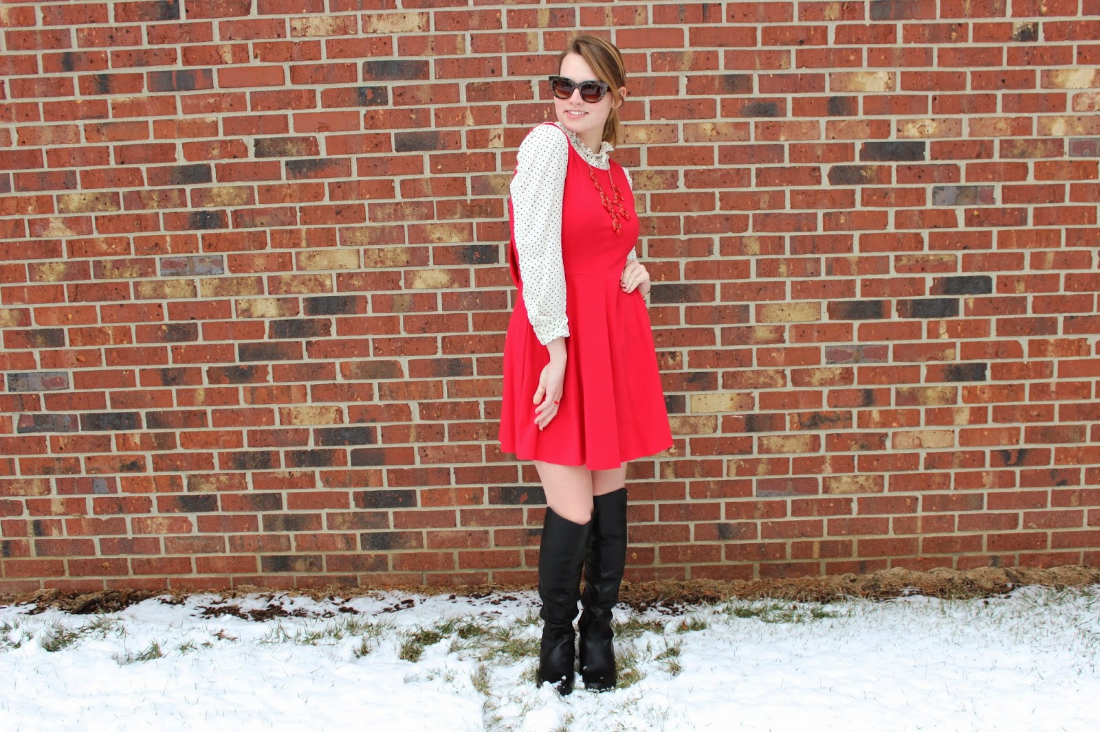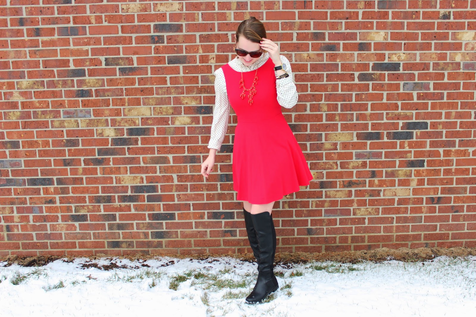 What I Wore: Dress: Forever 21/ Shirt: Target Similar/ Boots: DSW/ Sunnies: Kate Spade/ Necklace: J.crew Similar/ Bracelets: Kate Spade
