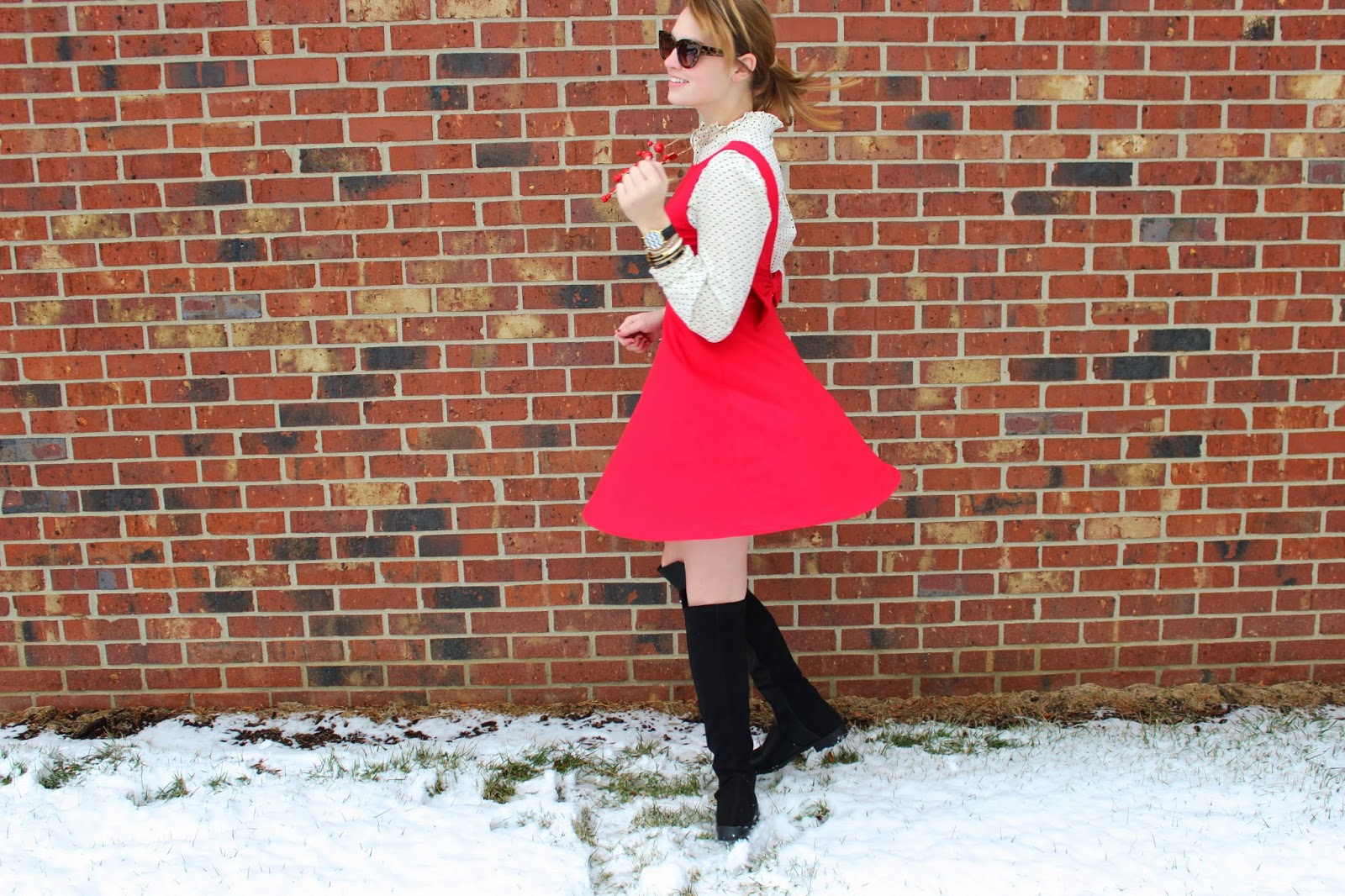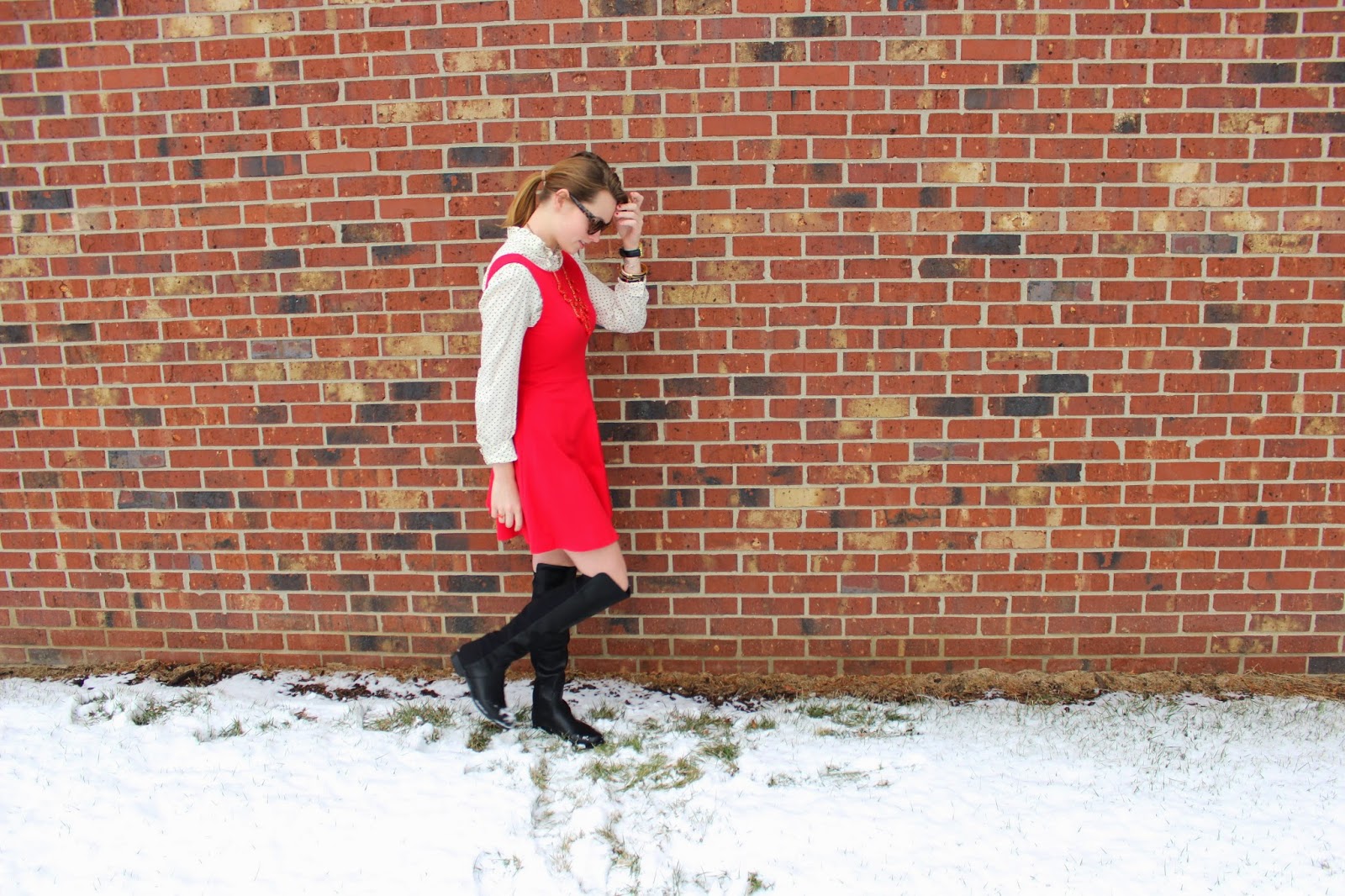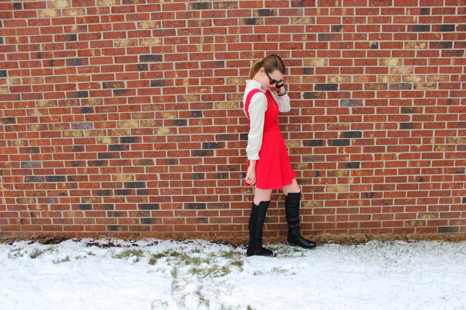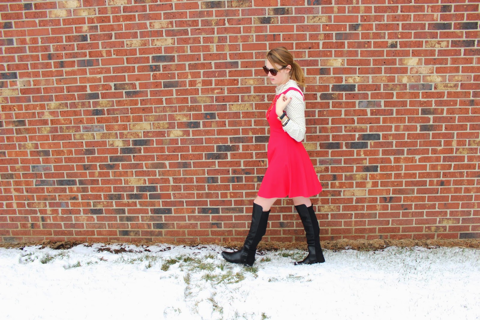 What I Wore: Dress: Forever 21/ Shirt: Target Similar/ Boots: DSW/ Sunnies: Kate Spade/ Necklace: J.crew Similar/ Bracelets: Kate Spade