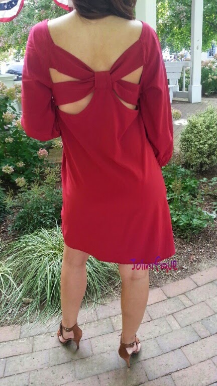 The back of this dress is just lovely it has a criss-cross pattern. It adds a bit of embellishment to a simple dress.